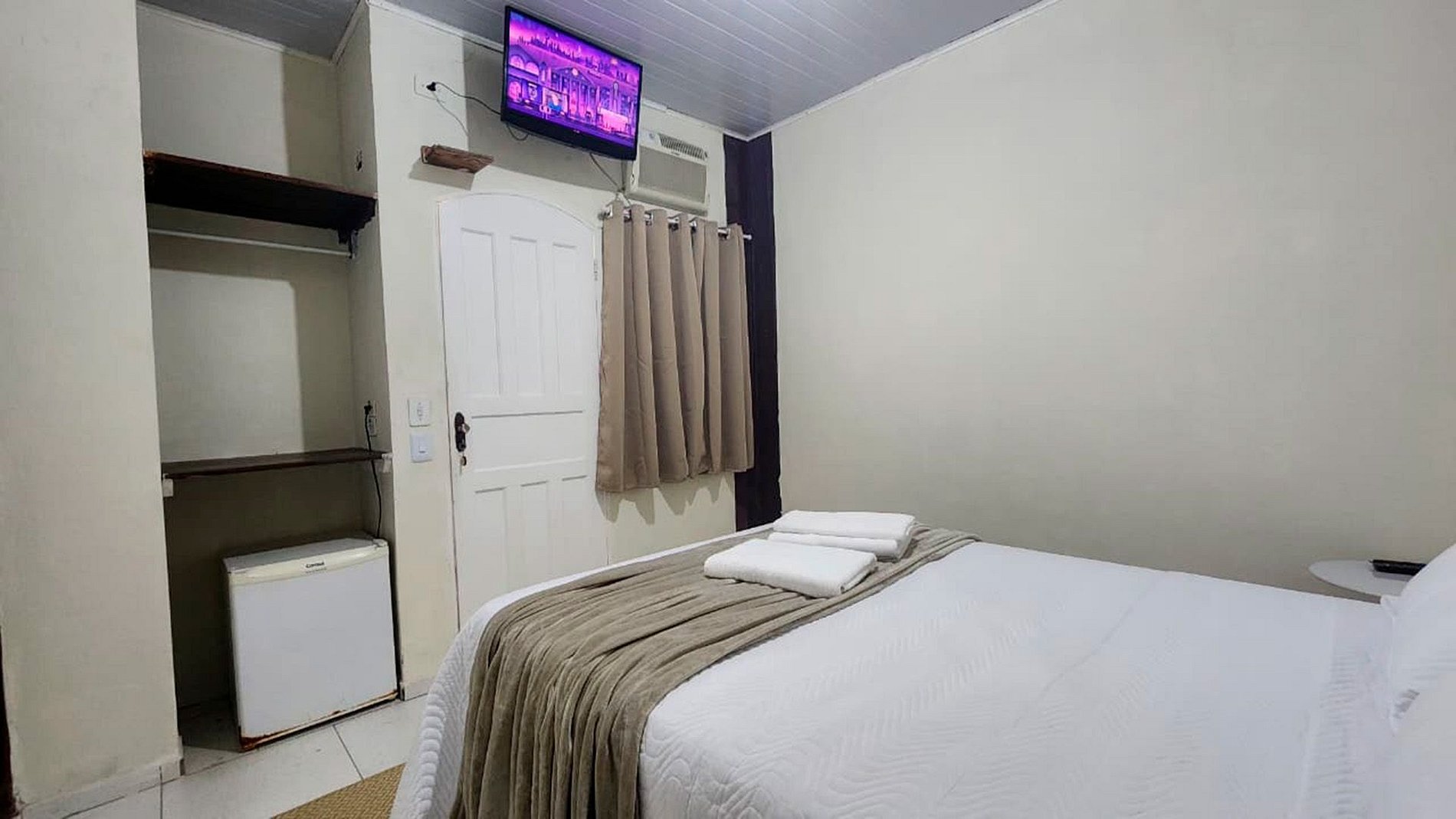Nossas acomodações são equipadas com ar-condicionado, TV, frigobar e roupas de cama de qualidade. O café da manhã variado (se contratado), o estacionamento gratuito e o atendimento atencioso tornam a estadia prática, confortável e inesquecível.