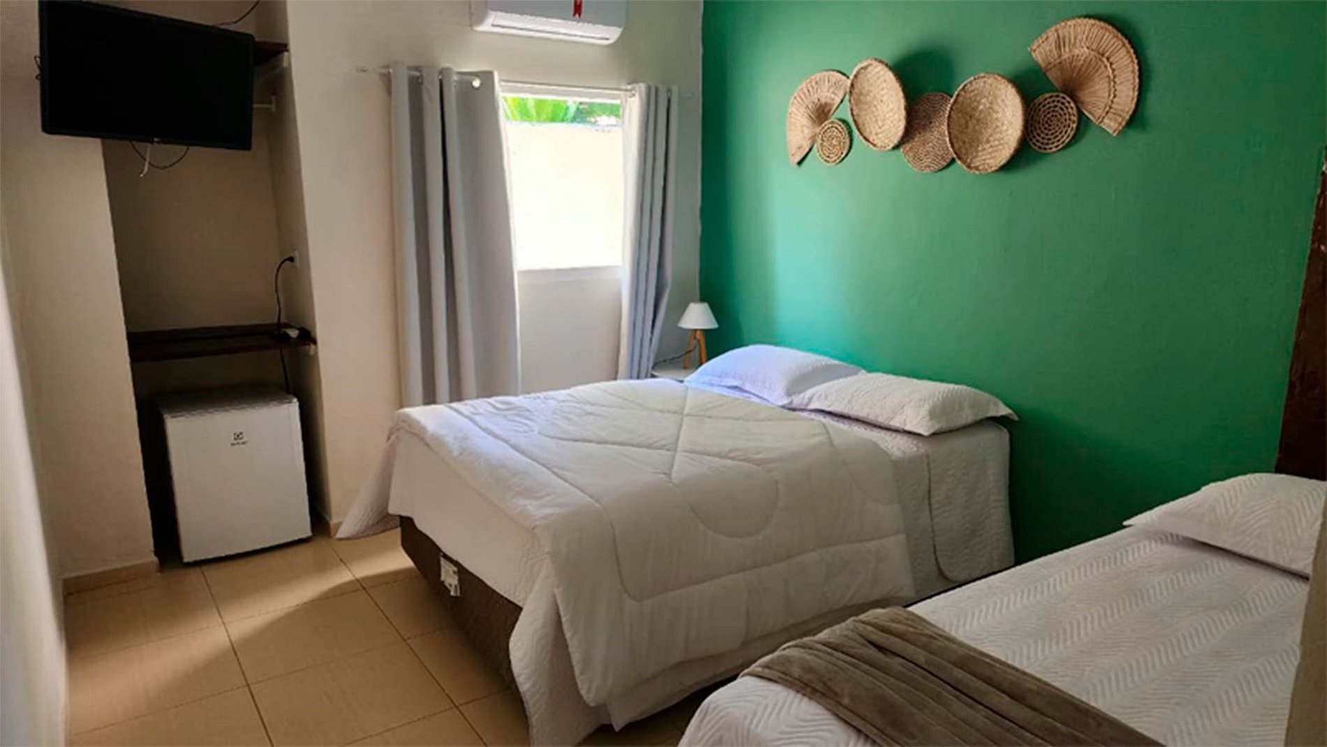 Nossas acomodações são equipadas com ar-condicionado, TV, frigobar e roupas de cama de qualidade. O café da manhã variado (se contratado), o estacionamento gratuito e o atendimento atencioso tornam a estadia prática, confortável e inesquecível.