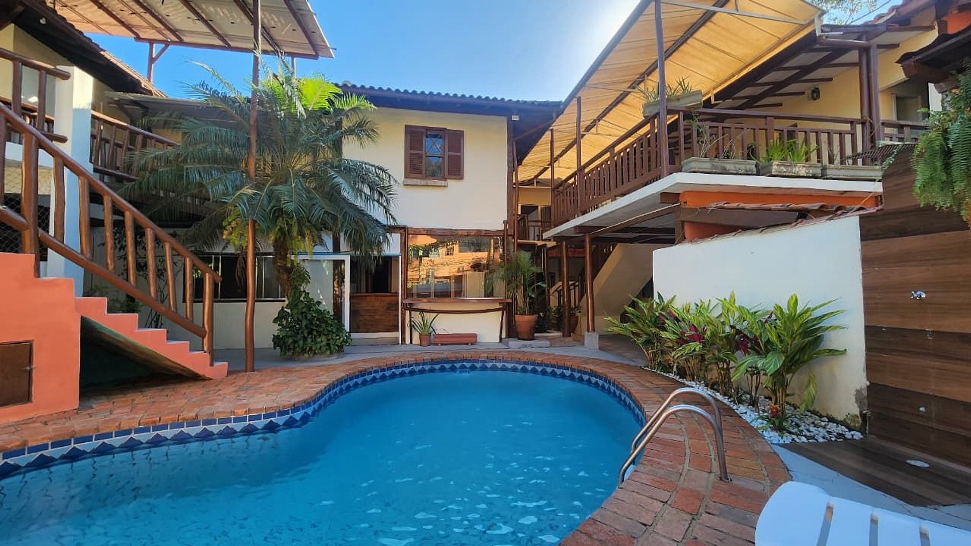 Nossos hóspedes têm acesso liberado a todas as dependências da pousada, incluindo piscina, área de convivência, estacionamento e refeitório do café da manhã.